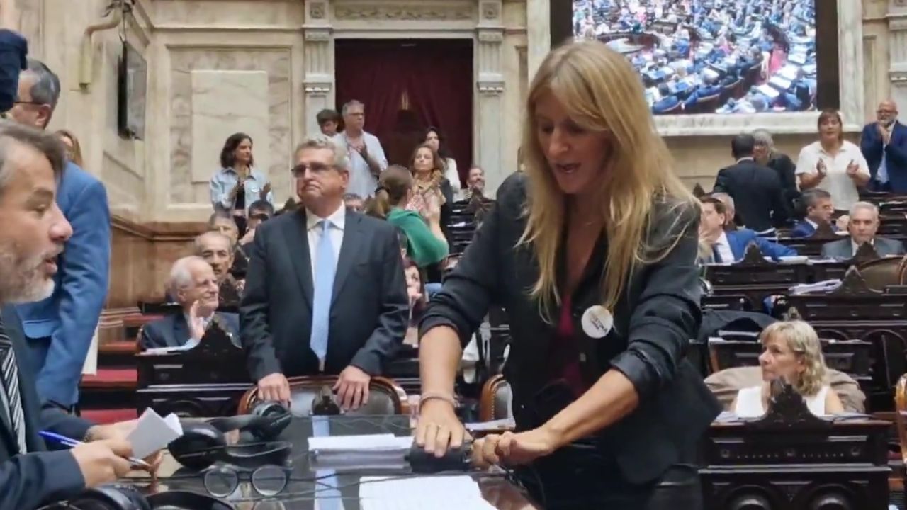 Minutos después, ya iniciado el debate, Menem mantuvo un cruce con la diputada Victoria Tolosa Paz, quien reportó fallas en su micrófono mientras hacía uso de la palabra. “Hubo gente de su bloque toqueteando los cables”, explicó.