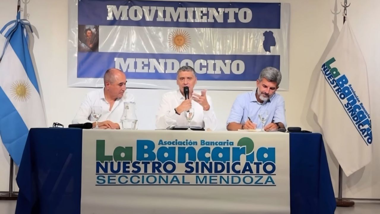 El encuentro fue organizado por La Bancaria Mendoza y contó con la presencia del intendente de la Ciudad de Mendoza, Ulpiano Suarez. El jefe comunal compartió panel con el presidente de la Federación Económica de Mendoza, Santiago Laugero y el secretario general de los bancarios, Sergio Giménez.