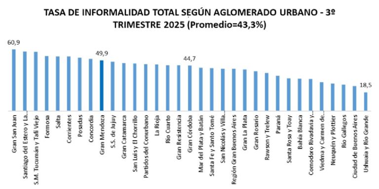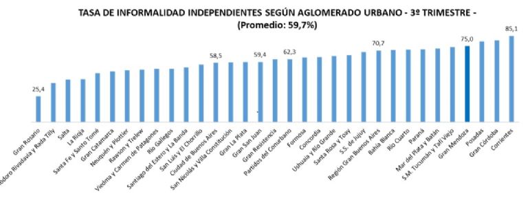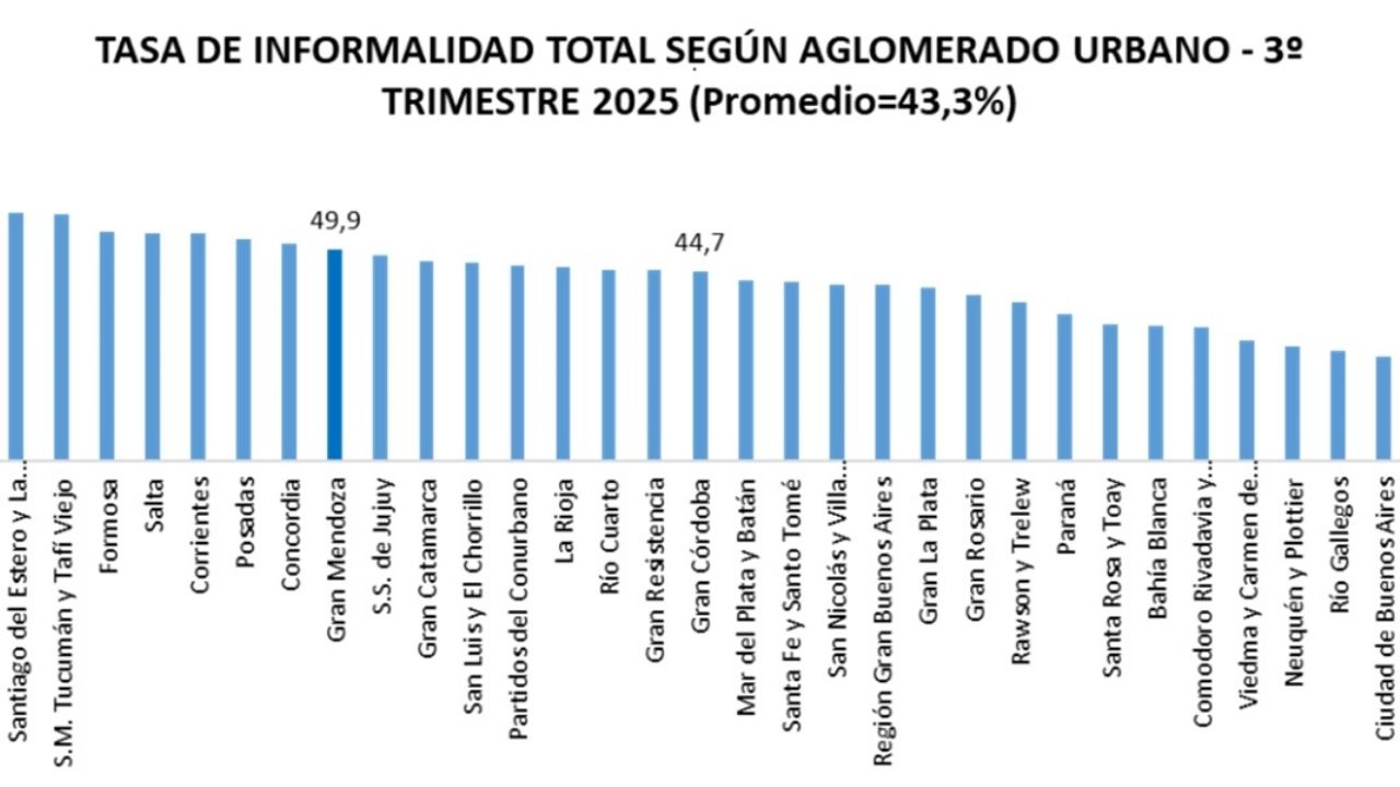 El destino electoral del 27 para LLA dependerá de que las promesas lleguen a la mesa de los argentinos. De que la economía real sea mejor para las familias. Empecemos con algunos datos: la informalidad en los trabajadores independientes es muy elevada y creciente. Casi 6 de cada 10 empleados independientes habitan la informalidad en el país. En Mendoza, como vemos ¾ partes se encuentran en esa condición vulnerable (sin aportes, derechos, coberturas, etc). Para darnos una idea, nuestros vecinos Chilenos y Brasileños tienen una tasa de informalidad del 26,8% y 36,5% respectivamente (Fuentes: INE – Chile – / IBGE – Brasil – Feb.26).