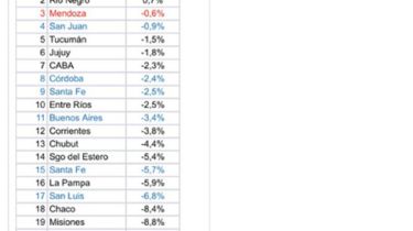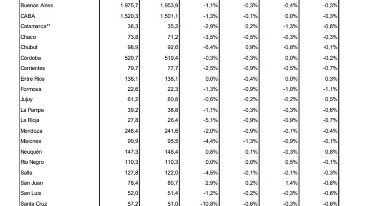 También marcan una disminución para Mendoza en la Superintendencia de Riesgos de Trabajo (SRT). A noviembre del 2024, según el dato más reciente difundido, la provincia tenía 427.868 personas trabajando formalmente, y en el mismo mes del 2025 bajó a 426.228; 1.640 puestos de trabajo menos.