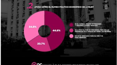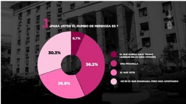 Cuando se consulta sobre el rumbo de Mendoza, el 36% dice que es una pesadilla, el 30,3% que no es lo que imaginaba, 26,8% que es el rumbo que votó y el 6,7% dice que es el que quería hace tiempo aunque no lo haya votado.
