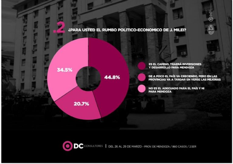 Al revés de Alfredo Cornejo, la gestión Milei es valorada por los mendocinos consultados. El 44,8% dice que es el cambio que traerá inversiones y desarrollo para Mendoza, el 34,5% que no es el adecuado para el país y el 20,7% que de a poco el país va creciendo y que en las provincias tardará un poco más en verse las ventajas.