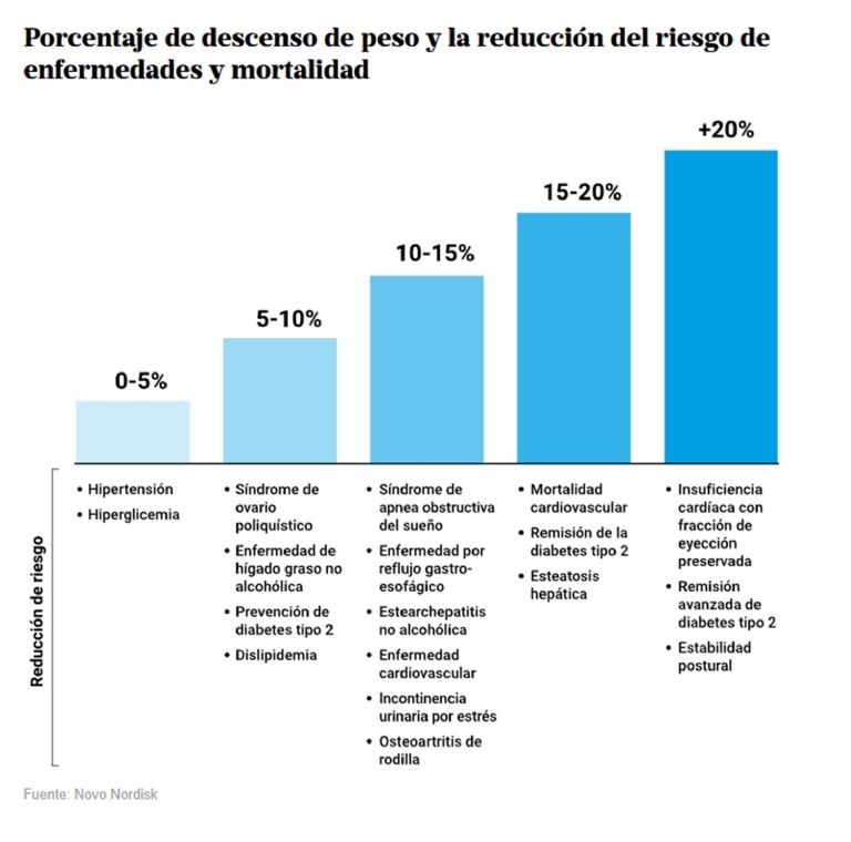 Las bondades del Wegovy, sin embargo, no terminan en el descenso de peso: también tiene impacto sobre las enfermedades cardiovasculares y renales. Ernesto Duronto, jefe de la Unidad Coronaria de la Fundación Favaloro, indicó que 40 pacientes argentinos obesos mórbidos participaron del estudio multicéntrico “Efectos de Semaglutida sobre los Resultados Cardiovasculares en Personas con Sobrepeso u Obesidad” (Select). “En todos los casos hubo descenso del colesterol, triglicéridos e hipertensión. La mayoría de ellos eran también prediabéticos, pero la administración de semaglutida redujo en un 70% el riesgo de volverse diabéticos”, detalló.