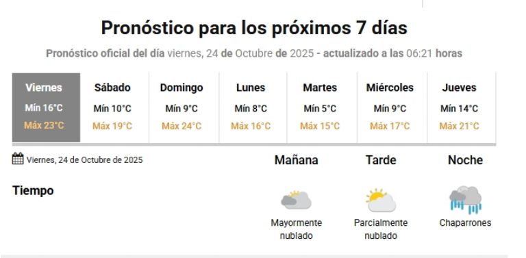 La jornada comenzará parcialmente nublada y ventosa, con un marcado descenso de la temperatura. Se anticipa que la máxima rondará los 23° a 26°, y la mínima se ubicará entre los 12° y 14°.