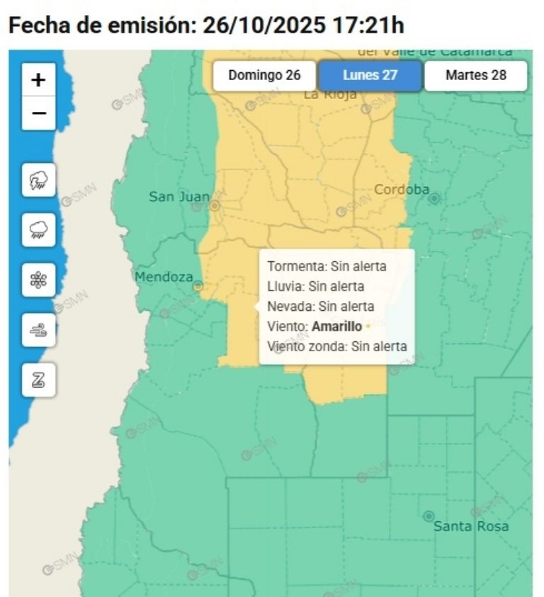 El Servicio Meteorológico Nacional lanzó una alerta amarilla por vientos fuertes en el Noreste de la provincia.