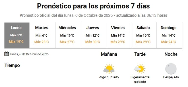 Este clima estable y de pleno sol es el preludio de una semana de intenso calor primaveral en Mendoza, con pronósticos extendidos que anticipan máximas de hasta 25° para mañana martes y rozando los 30° para el cierre de la semana laboral.