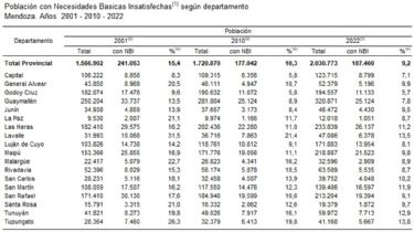 Bueno, Tupungato es el departamento de Mendoza en donde más Necesidades Básicas Insatisfechas hay, lidera el ranking con el 13,8% según la Dirección de Estadísticas e Investigaciones Económicas (DEIE) en base a los datos del Censo 2022.