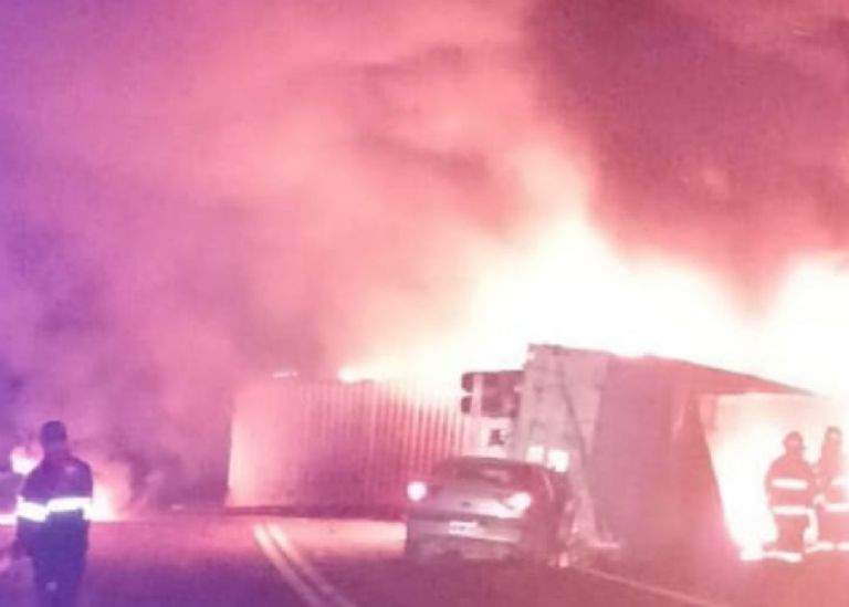 Un violento accidente frontal entre dos camiones desató un incendio de grandes proporciones en el kilómetro 1090 de la Ruta Nacional 7, a la altura de Potrerillos. El hecho ocurrió minutos después de la medianoche e involucró también a un vehículo menor.