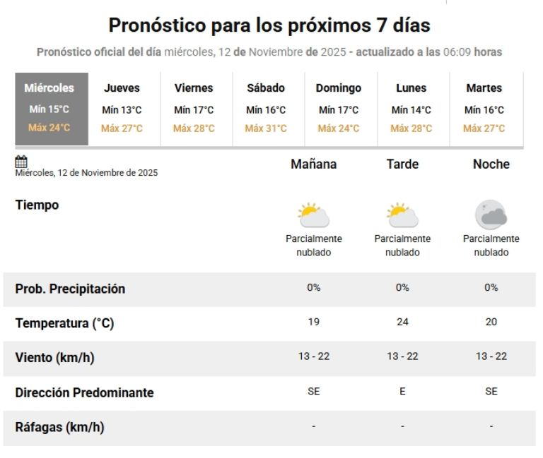 Si bien este miércoles trae buenas condiciones meteorológicas, el pronóstico extendido ya anticipa un cambio. A partir del jueves, se espera un ascenso de la temperatura (máxima cerca de los 31°), pero con un aumento de la inestabilidad.