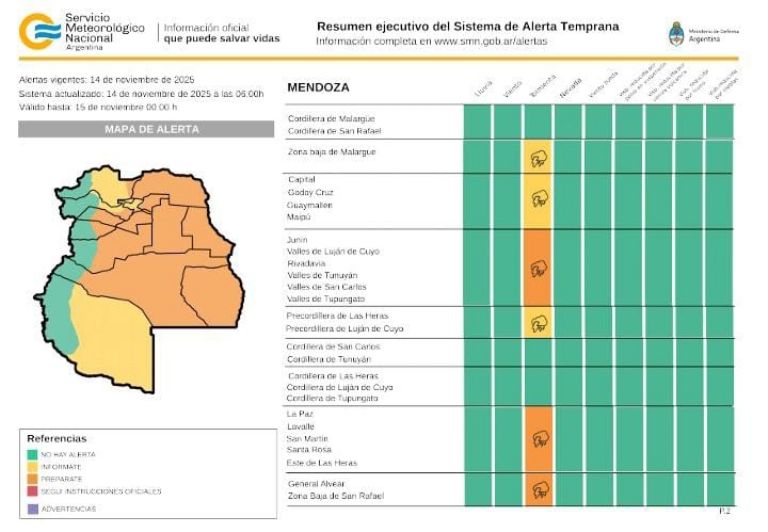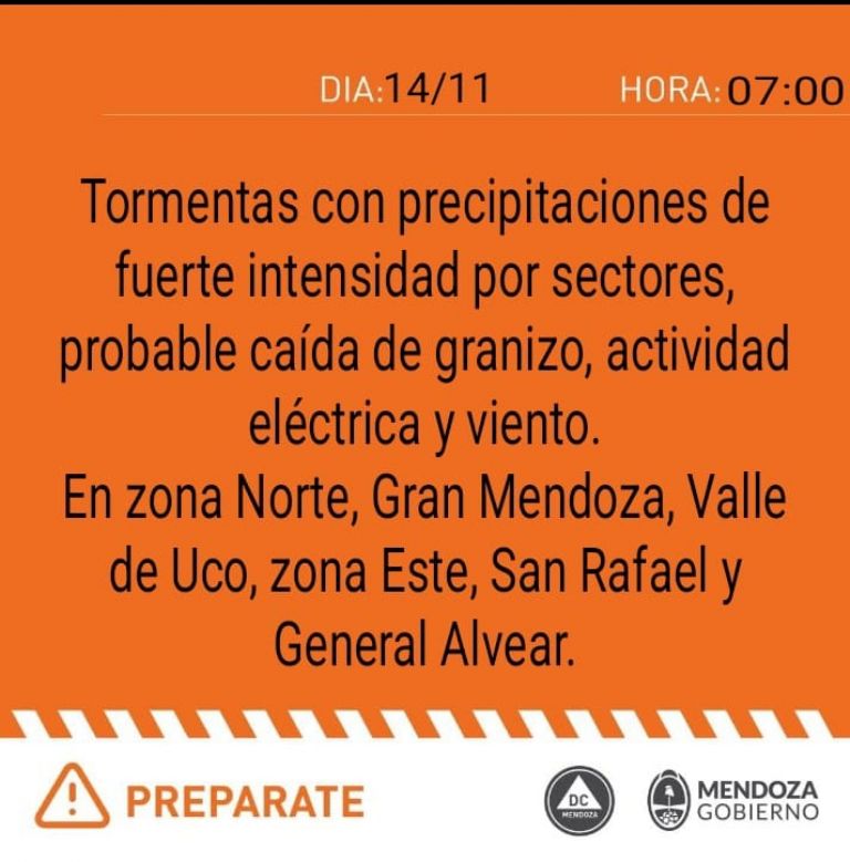 Alerta naranja: impacto en el este y Valle de Uco
