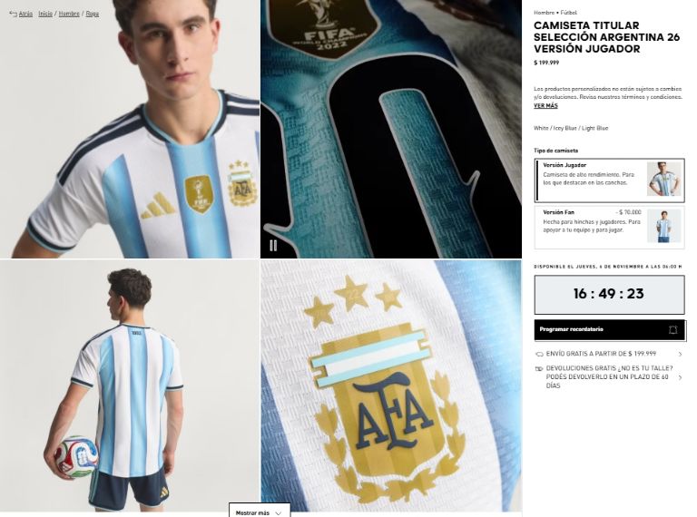 La indumentaria se ofrece en una amplia gama de versiones para distintos públicos, con precios que varían según el modelo y el talle, según lo publicado en la web oficial de la marca: