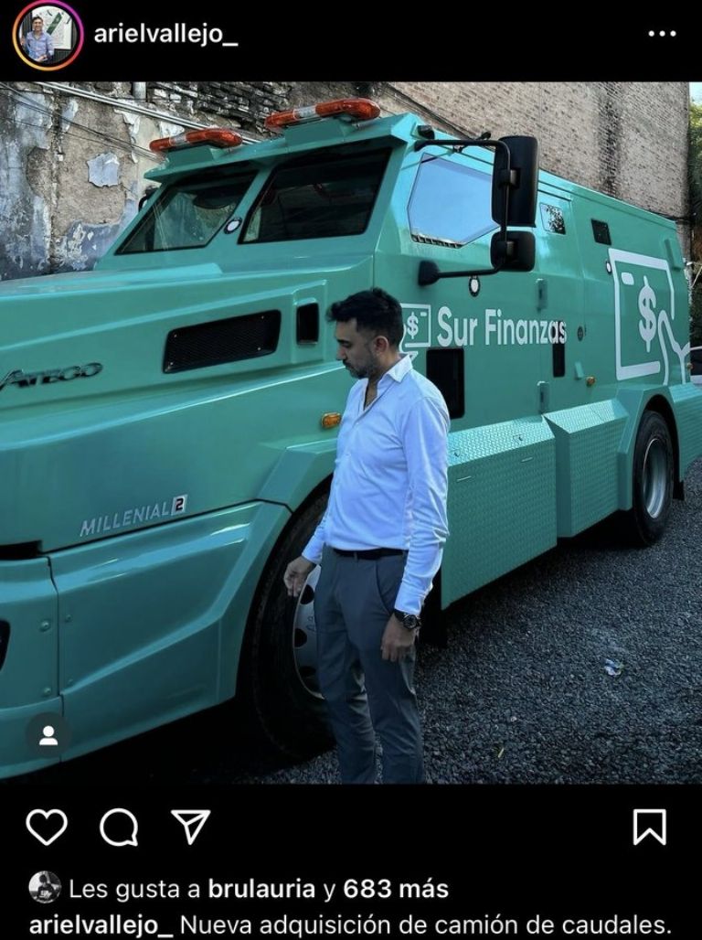 La Justicia incautó a Sur Finanzas una flota de camiones de caudales comprados por su titular, Ariel Vallejo, para trasladar dinero en efectivo que antes se movía en bolsos y bolsas de consorcio con la ayuda de "policías de civil", en una causa que investiga posible lavado de dinero.