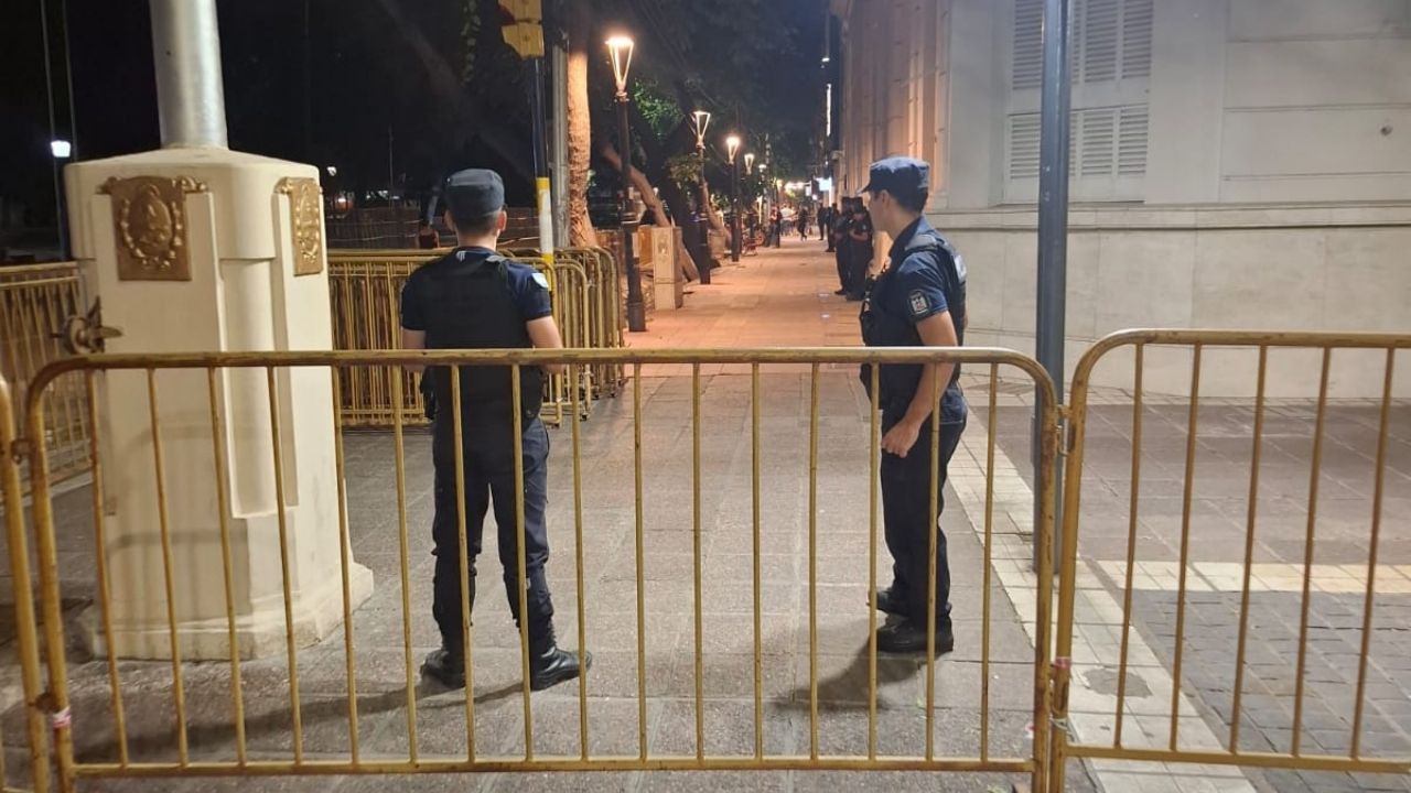 Del otro lado de la Plaza, por calle Patricias, pocos policías se veían en el exterior de la Legislatura y era recurrente el paso de patrulleros.
