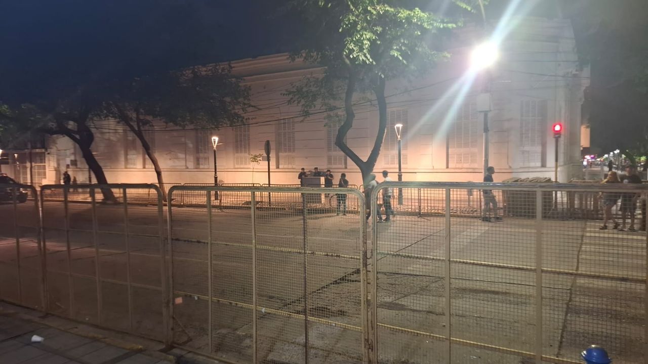 Se veía a la perfección el corralito con rejas que planificó el ministerio de Seguridad para que los manifestantes, mañana no puedan llegar a la Legislatura e ingresar al recinto. También buscan que los senadores, una vez terminada la sesión, puedan salir sin tantos problemas como tuvieron los diputados cuando aprobaron la media sanción de los cuatro proyectos mineros que tratarán hoy, el más importante es la Declaración de Impacto Ambiental (DIA) de San Jorge.