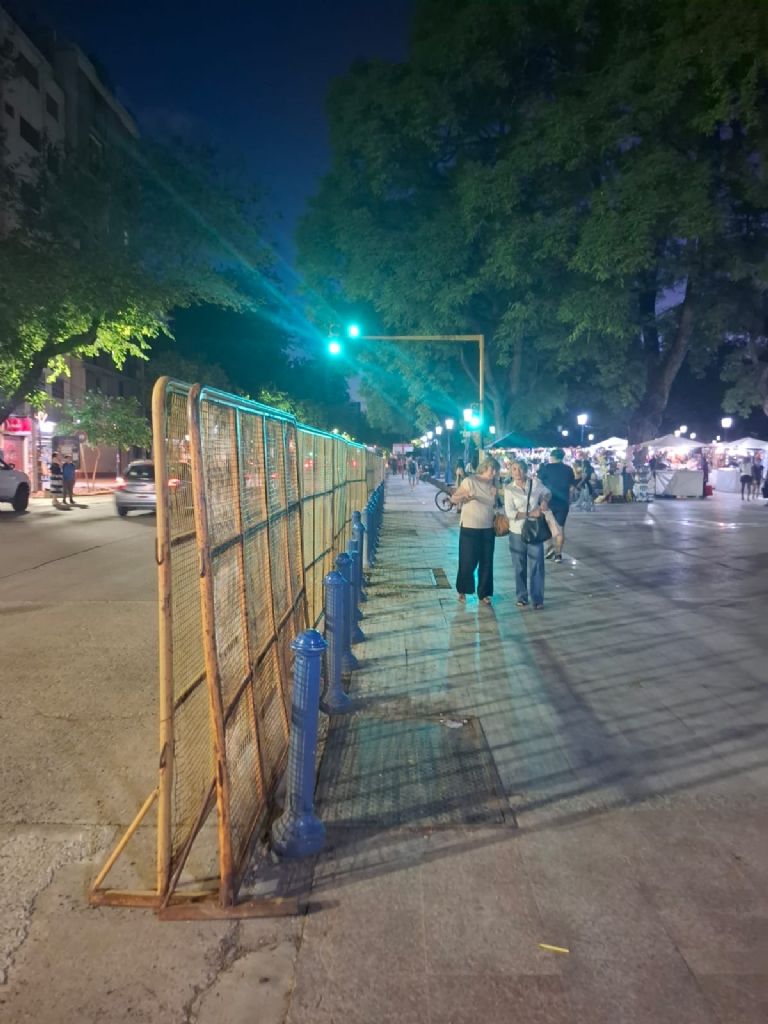 Anoche tanto la Peatonal Sarmiento como la Plaza Independencia estaban con la cantidad de gente habitual y con mucha tranquilidad, solo se escuchaban las canciones que cantaban los músicos que habían llegado para solidarizarse con la protesta antiminera y las consignas contra San Jorge cuando algún referente tomaba el micrófono.