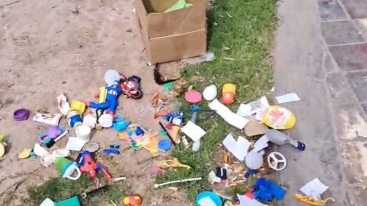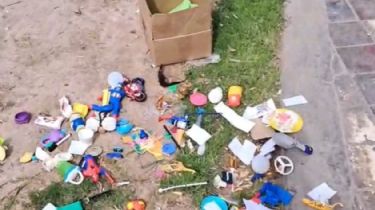En este caso una vecina mostró cómo alguien revolvió la basura y dejó varios juguetes tirados en el espacio público.