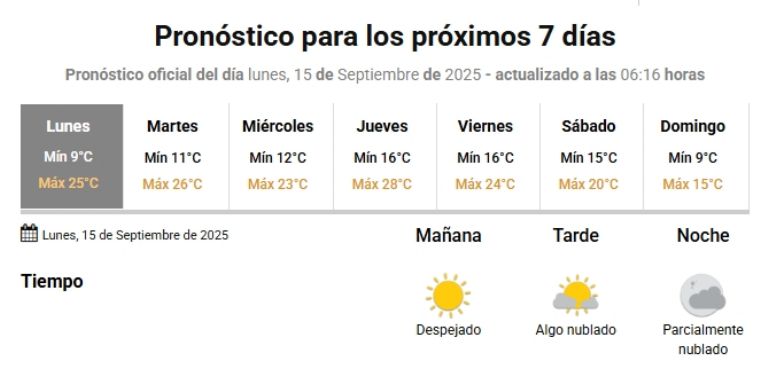 De acuerdo con el pronóstico oficial, la mañana se presentará fresca, con una temperatura mínima que rondaría los 7°. Sin embargo, con el correr de las horas, el sol se impondrá y la temperatura subirá de manera sostenida, alcanzando una máxima de 25° durante la tarde.