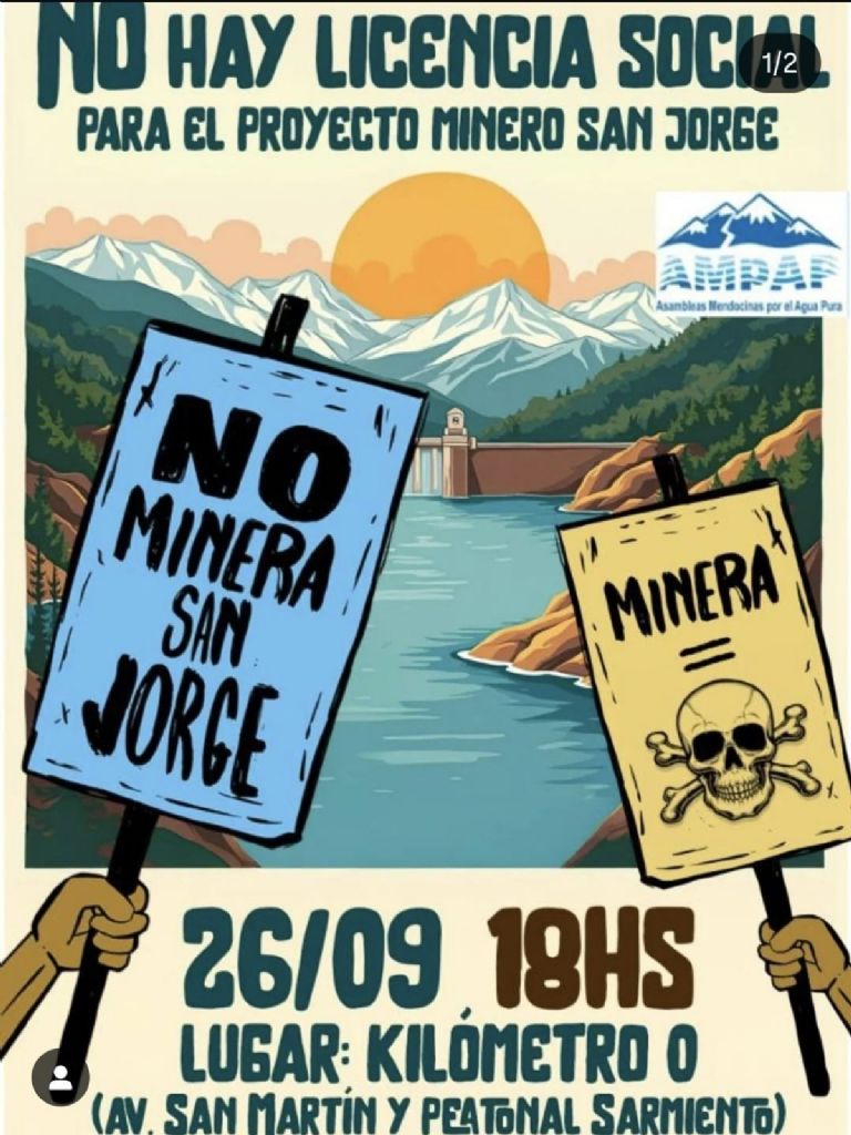 Miembros de la Asamblea de Vecinos Autoconvocados de Uspallata y la Asamblea Mendocina por el Agua Pura (AMAP) anunciaron que realizarán el viernes a las 18, una marcha en San Martín y Peatonal para protestar contra la minera San Jorge.