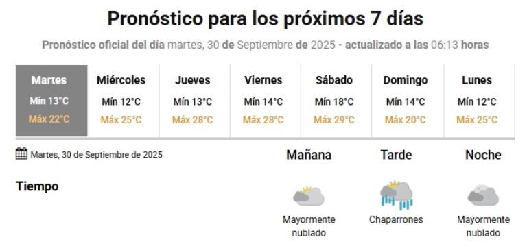 La máxima prevista se ubica en los 23°, un valor significativamente inferior a las jornadas anteriores. La mínima registrada será de 11°.