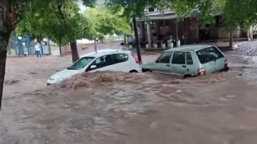En Luján de Cuyo la calle Anchorena se convirtió en un río y el agua arrastró a dos autos. Un Fiat Punto blanco comenzó a deslizarse por el agua y en el camino golpeó a un Fiat Uno gris.