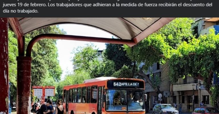 "Las Empresas de Transporte de pasajeros de Mendoza garantizan el servicio de colectivos para este jueves 19 de febrero", afirmó la Asociación Unida Transporte Automotor Mendoza en su perfil de Facebook.
