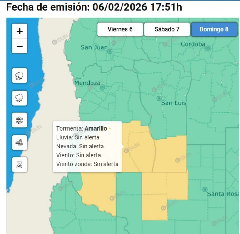 El Servicio Meteorológico Nacional lanzó dos alertas amarillas para Mendoza. Una por Zonda en el departamento de Malargüe y una por tormentas en San Rafael y en Alvear.