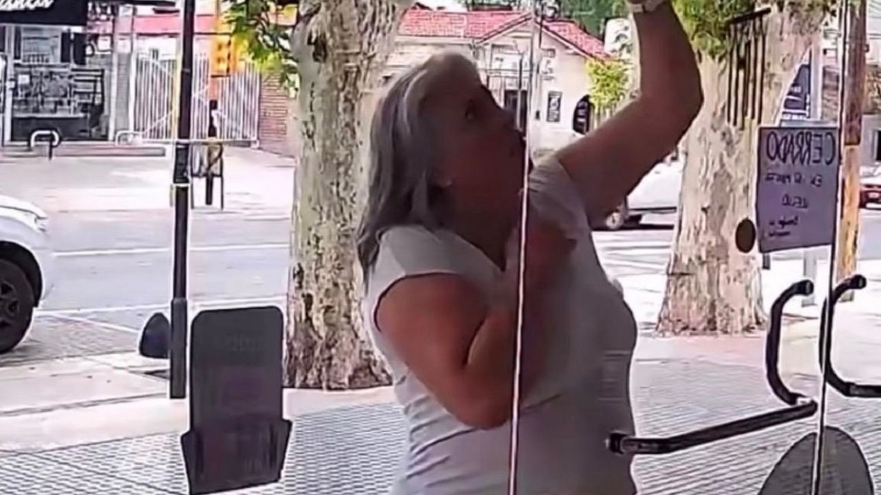 Video: una mujer se enojó porque un negocio estaba cerrado y rayó la vidriera