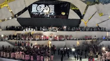 La intención del gobierno provincial de esconder los reclamos contra la minería han alcanzado niveles impensados. Este fin de semana se confirmó que el Ejecutivo ordenó hacer modificaciones en el guion de la Fiesta Nacional de la Vendimia para evitar que se destaque la importancia del agua y los ríos. En su lugar, tras el cambio, el guion habló de "tierra" y "surcos". Pero a pesar de los esfuerzos del Ejecutivo, un grupo de artistas logró ingresar una bandera contra la minera San Jorge y fue desplegada en el escenario principal.