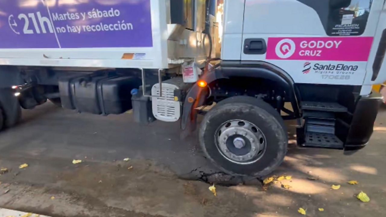 Godoy Cruz: se hundió el asfalto y un camión recolector quedó atrapado