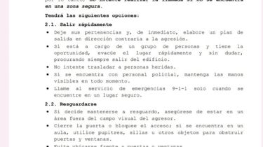 - Si está a cargo de un grupo de personas y tiene la oportunidad, evacúe el lugar rápidamente y sin dudar, procurando siempre salir del edificio.