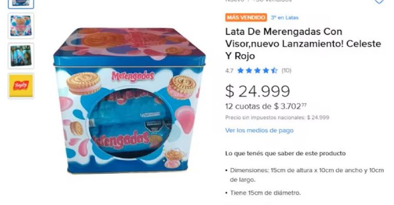 Por ejemplo, ya se anuncia una lata de Merengadas con visor como “nuevo lanzamiento” en Mercado Libre, con opciones de retiro en local o envío.